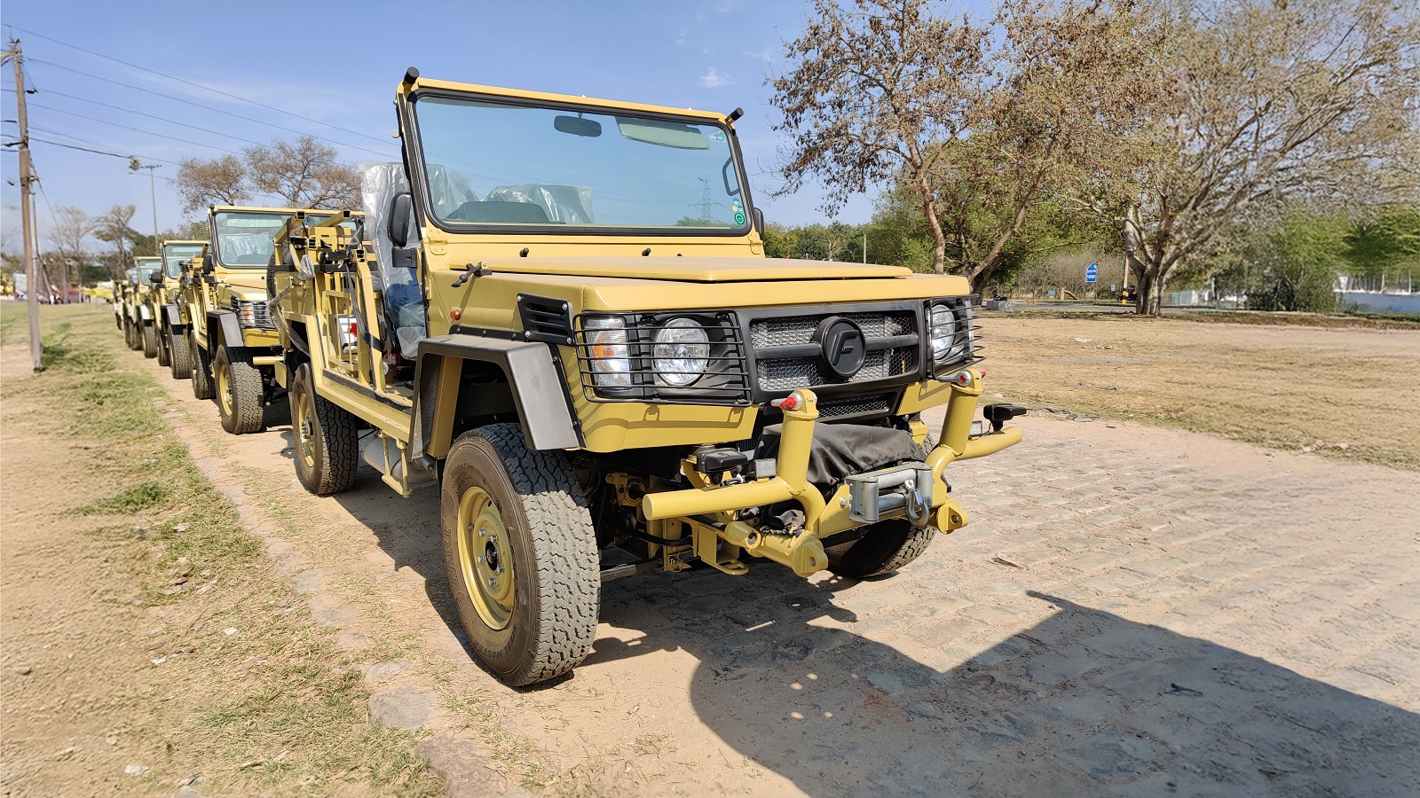 1. Introduction In today’s rapidly evolving battlefield, speed, adaptability, and connectivity are as critical as armour and firepower. The Light Strike Vehicle (LSV) embodies this philosophy — a lightweight, high-mobility 4×4 platform that enables forces to strike fast, manoeuvre through hostile terrain, and exfiltrate before the enemy can react. Deployed extensively by special forces, airborne regiments, and reconnaissance units, the LSV is the spearhead of tactical mobility. It can traverse deserts, jungles, or high-altitude zones where heavier armoured vehicles cannot operate effectively. Its open architecture, modular chassis, and high power-to-weight ratio make it ideal for hit-and-run tactics, convoy escort, surveillance, and reconnaissance. Yet, its very openness — while advantageous for mobility — imposes limitations on endurance and operational scope. Exposure to weather, dust, and acoustic interference reduces mission duration. More critically, the open design constrains the integration of sensitive electronics such as radio transceivers, satellite communication gear, or tactical computing systems that demand a sealed, vibration-isolated environment. Recognizing these challenges, Neometrix Defence Limited developed the Light Strike Vehicle Modification and Upgrade Program — a transformative engineering solution that elevates the LSV from a fast-attack platform to a mobile command and communication hub. Through a series of structural reinforcements, interior refits, electrical integrations, and environmental controls, this program converts a standard LSV into a fully enclosed, climate-controlled, multi-mission platform capable of operating as a forward C3 (Command, Control & Communication) node. This upgrade allows defence and paramilitary organizations to repurpose their existing LSV fleets into modern, mission-ready systems for special communication operations, electronic warfare support, and surveillance coordination — without losing the inherent agility and reliability that define the LSV’s battlefield reputation. 2. Mission Role The modified Light Strike Vehicle serves as a compact, high-mobility communication and control platform, enabling real-time coordination in forward zones. It can support: • Secure communication relay between mobile convoys and command bases. • Tactical mission management for reconnaissance or UAV-supported operations. • Signal and surveillance missions, where low acoustic and thermal signature is essential. • Rapid-deployment coordination for special forces teams operating beyond fixed bases. The four-crew layout (driver, co-driver, and two rear operators) ensures simultaneous vehicle operation, mission control, and data transmission without interference or downtime. 3. Structural and Cabin Enhancements • Fully Enclosed LMS Body Capsule: Fabricated from 1.6 mm low-carbon mild steel, insulated with thermal glass-wool, and lined with padded leather panels. The 2 mm internal liner provides noise damping and comfort for extended operations. • Dimensions: Roof module 1870 × 2650 mm; sealed joints protect against dust rain, and temperature extremes. • Doors and Access: Four side doors (1100 × 870 mm) and a rear door (900 × 900mm) made of 1.6 mm LMS, fitted with 6 mm toughened tinted Lamisafe glass. • Security Features: Central locking (mechanical + wireless), dual RC and “Gucha” locks, rain visors, and full-length seals. • Finish: Matte Olive-Green Desert polyurethane enamel with ~110 μm DFT coating for UV and corrosion protection. 4. Crew Layout and Ergonomics The modified LSV is configured for four forward-facing crew members: driver, co-driver, and two rear operators. • Rear Seats: 500 × 500 mm seat base and 700 mm backrest with 200 mm slide travel for workstation access. • Material: Ventilated leather upholstery, foam density 40 (50 mm thickness). • Comfort Features: Seatbelts, padded interior, grab handles, and low-glare LED lighting. • Lighting: 2 × 12 V / 6 W LED dome lights for even illumination. The ergonomic design reduces fatigue during long missions while providing sufficient space for operators to use laptops, radio panels, or surveillance monitors. 5. Communication and Equipment Integration Central Communication Rack A custom LMS communication rack (400 × 400 × 900 mm) is installed between the two operator seats: • Five adjustable shelves (400 × 400 × 1.6 mm) for communication hardware, power supplies, or servers. • Two fold-out trays (400 × 300 × 20 mm) for laptop or document use. • Shock-proof ESD mats across all shelves and floor panels. • Lockable storage at the base for accessories or mission spares. • Designed for easy cable routing and ventilation of electronic equipment. Weapons and Equipment Storage • Weapons Box: 900 × 300 × 300 mm, lockable, floor-mounted. • Ammunition Box: 160 × 300 × 300 mm. • Arms Box: 740 × 300 × 300 mm. All fabricated from 1.6 mm LMS with reinforced hinges, vibration-isolated mounts, and secure latching. 6. Electrical and Power Systems • Battery Configuration: Dual 12 V, 100 Ah batteries connected in parallel (12 V, 200 Ah total). - Primary battery powers the vehicle system. - Secondary (formerly winch) battery dedicated to mission electronics and lighting. • Alternator: 13.5 V / 155 A unit capable of recharging both batteries within approximately 3 hours. • External Generator (Optional): 2.4 kVA field-deployable genset with four socket outlets for long-duration operations. • Electrical Safety: Fused harnesses, isolator switch near the operator rack, and surge protection for communication circuits. 7. Environmental Control (HVAC) • System Type: Dual-vent, fully integrated air-conditioning and heating system. • Temperature Range: 15 °C – 30 °C adjustable. • Compressor: 5 HP belt-driven compressor powered by vehicle engine (104 kW / 140 BHP). • Features: Front defogger, rear air distribution vents, and filtered a
